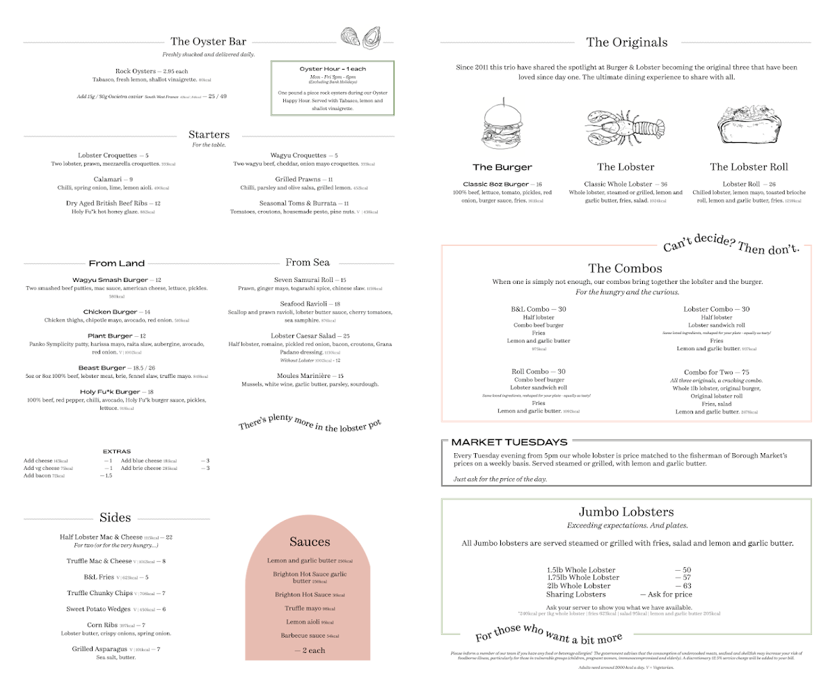 All three originals, a cracking combo. Whole 1lb lobster, original burger, Original lobster roll, Fries, salad, Lemon and garlic butter